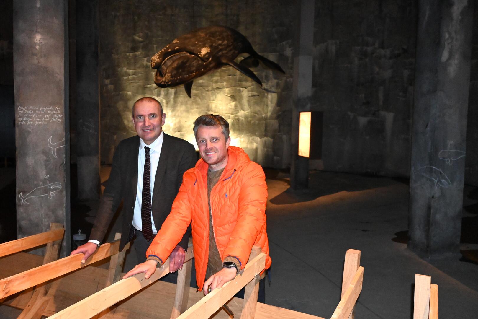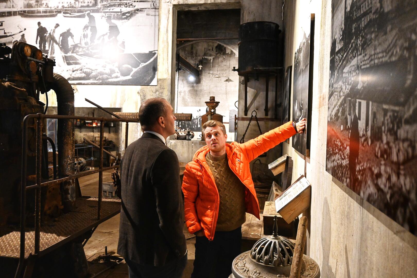 Héðinn Birnir Ásbjörnsson segir forseta frá Baskasetrinu í olíutanki síldarverksmiðjunnar á Djúpavík. Ljósmynd/Una Sighvatsdóttir