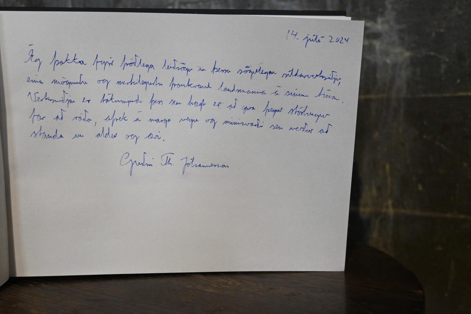 Ritað í gestabók síldaverksmiðjunnar á Djúpavík. Ljósmynd/Una Sighvatsdóttir