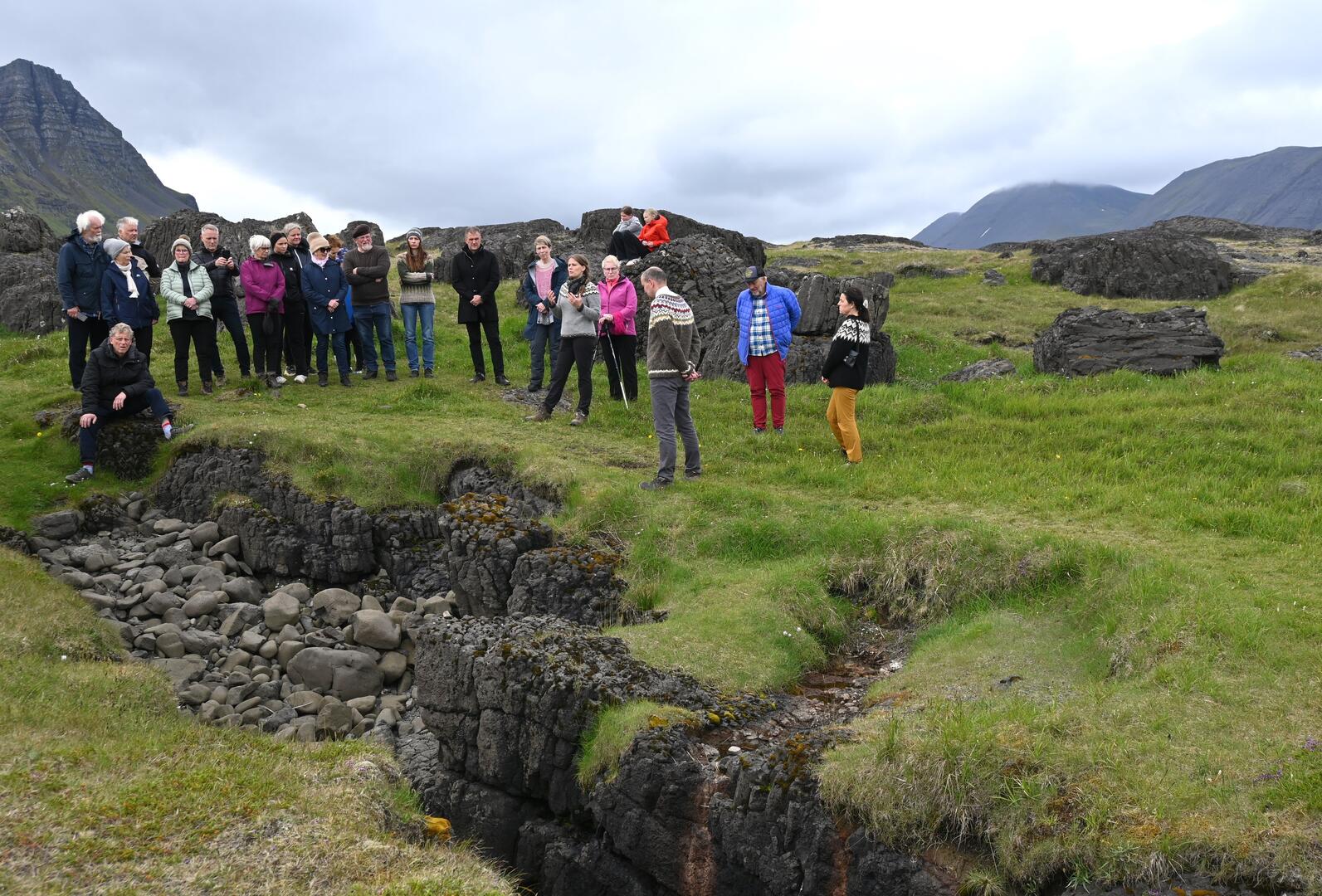 Hópganga á Glissu í Árneshreppi á vegum Ferðafélags Íslands, undir leiðsögn Reynis Traustasonar. Ljósmynd/Una Sighvatsdóttir