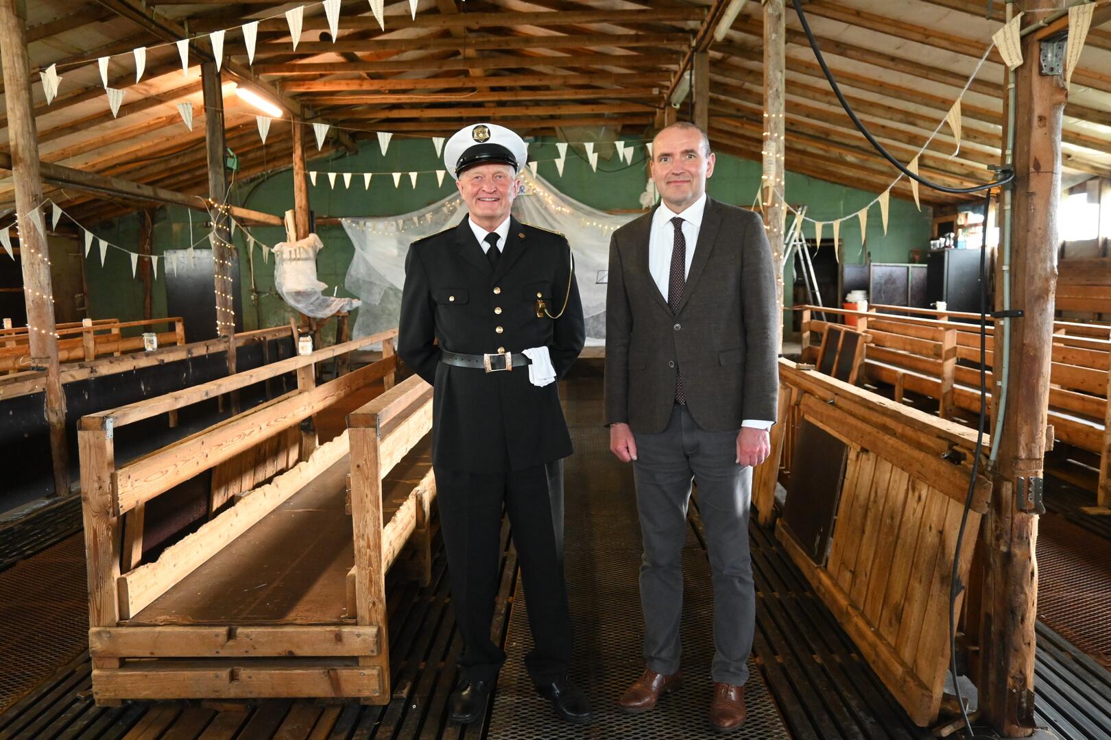Gylfi Þór Gíslason, lögregluvarðstjóri á Ísafirði, ásamt forseta í fjárhúsinu á Melum í Trékyllisvík. Ljósmynd/Una Sighvatsdóttir