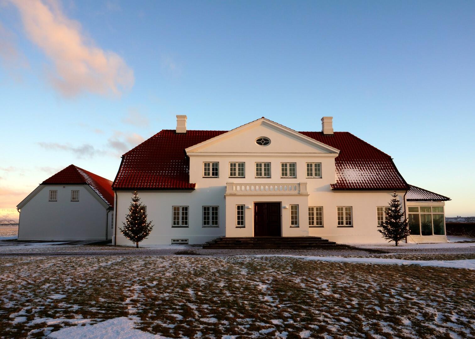 The property of Bessastaðir on Álftanes, near Reykjavík, has a history that runs from the Age of Settlement (that ended in 930). In its present form, Bessastaðir consists of a group of buildings including Bessastaðastofa, a reception room, a service wing, the President’s Residence, the manager’s and caretaker’s apartments, Bessastaðir Church, and a garage.