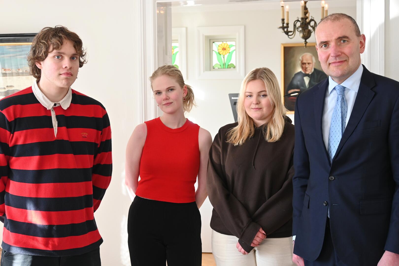 • Askur Hrafn Hannesson, Íris Björk Ágústsdóttir og Aníta Sóley Scheving Þórðardóttir afhenda 2.100 undirskriftir við áskorun á forseta vegna laga um breytingu á lögum um útlendinga. Ljósmynd: Skrifstofa forseta Íslands/Una Sighvatsdóttir