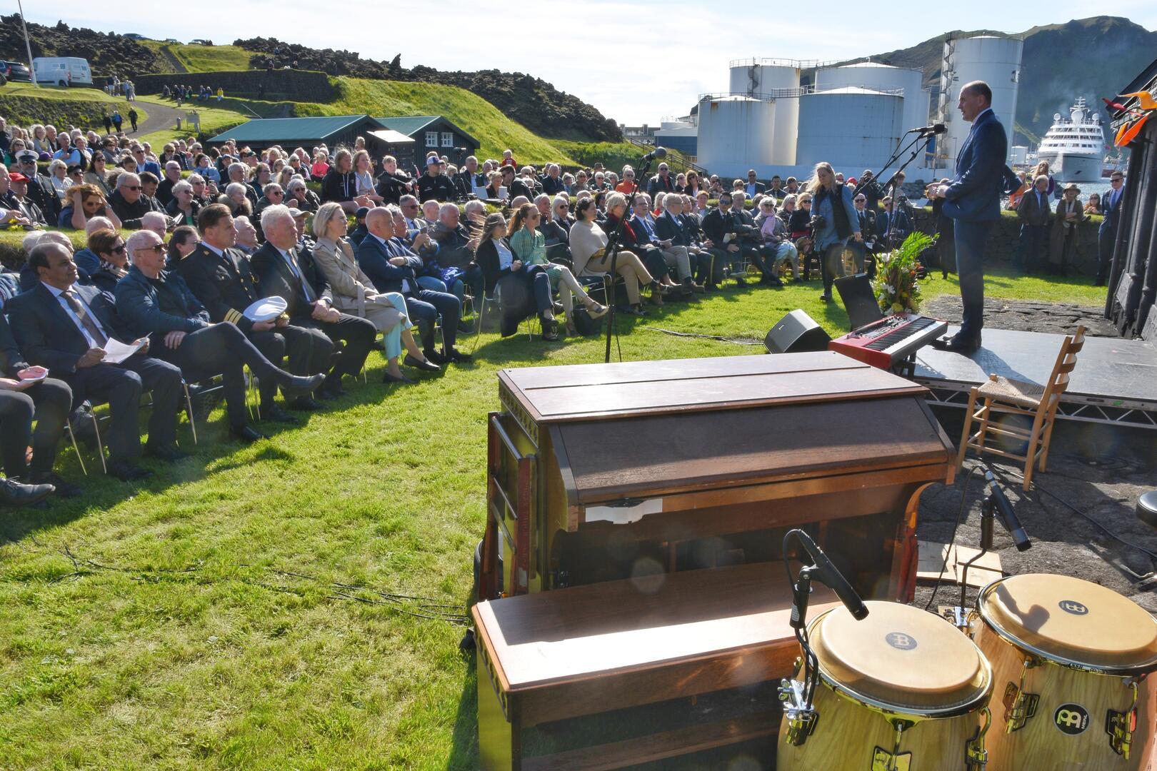 • Setning goslokahátíðar á skansinum í Heimaey, 50 árum frá goslokum. Ljósmynd/Óskar Pétur Friðriksson.
