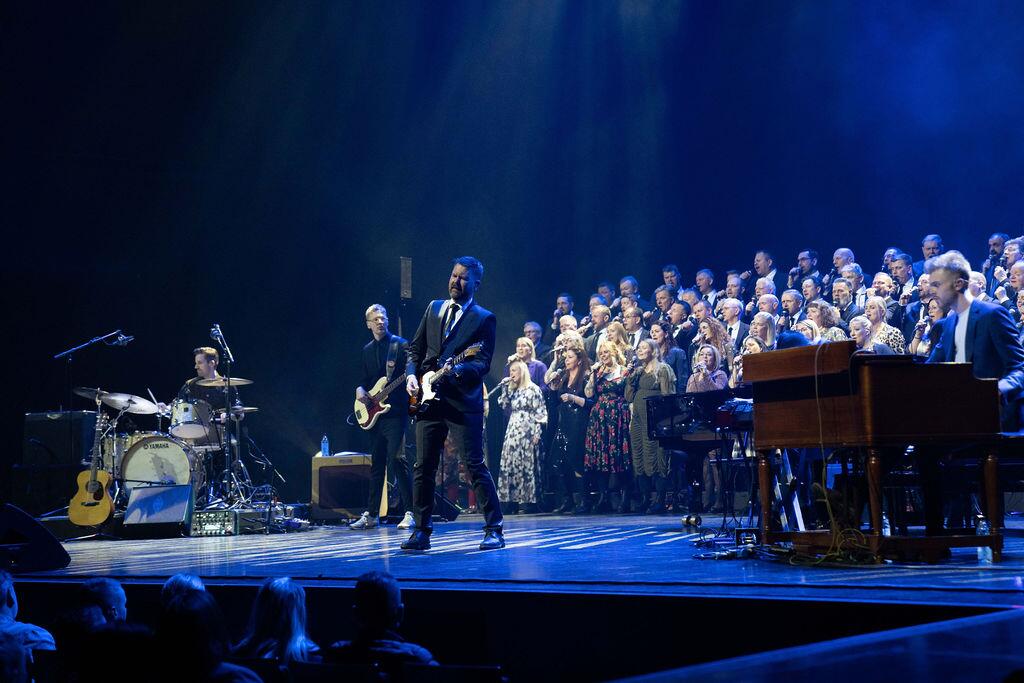 Ég naut líka þess heiðurs að taka lokalag tónleikanna með Fjallabræðrum og Grindavíkurdætrum, þeim úrvalskór sem ég hlustaði síðast á í Grindavík stuttu áður en hamfarirnar dundu yfir í fyrra. Saman sungum við gamalkunnugt lag Óla popp sem samið var um Flateyri á sínum tíma en má kalla nokkurs konar þjóðsöng landsbyggðarinnar. Textanum breyttum við aðeins, kyrjuðum um hafið eða Þorbjörn sem að laðar okkur að, eins og heyra má á upptöku sem hér fylgir.