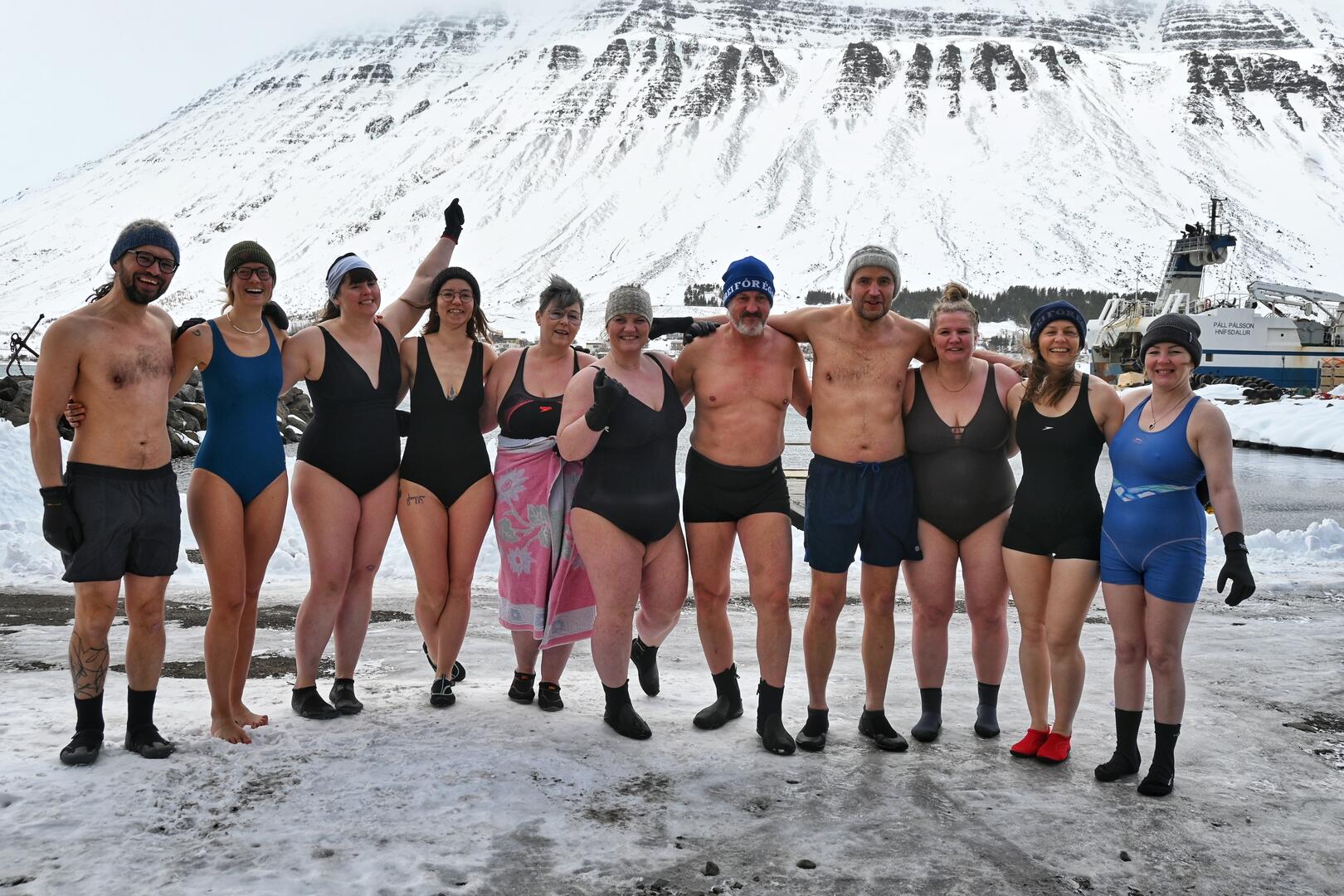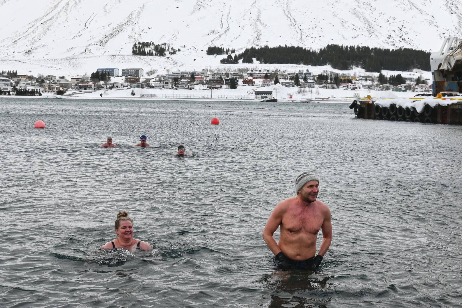 Að morgni föstudagsins langa fékk ég mér sundsprett út af Neðstakaupstað með hópi vestfirskra sjósundskappa. Kannski má kalla það píslarsund. Síðan lá leiðin í Tungudal á Skíðaviku, eina elstu bæjarhátíð landsins, sem Skíðafélag Ísafjarðar stendur að. Í ár fagnar félagið 90 ára afmæli og ræddi ég um hag félagsins við formanninn, Elenu Dís Viðarsdóttur.