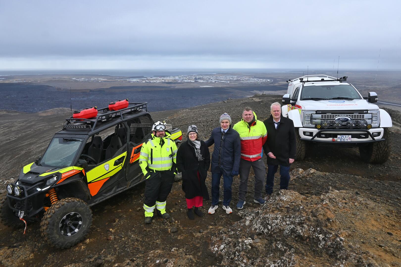 Að fundi loknum héldum við Eliza svo í skoðunarferð um bæinn og gosstöðvar í grennd í fylgd með fulltrúum björgunarsveitarinnar Þorbjarnar. Ég dáist enn að elju og þrautseigju Grindvíkinga í þeim hremmingum sem yfir þá hafa dunið. Á það minntist ég í máli mínu og þakkaði jafnframt gestrisni þeirra og góðvild í öll þau skipti sem leið mín og míns fólks hefur legið í þeirra öfluga sveitarfélag.