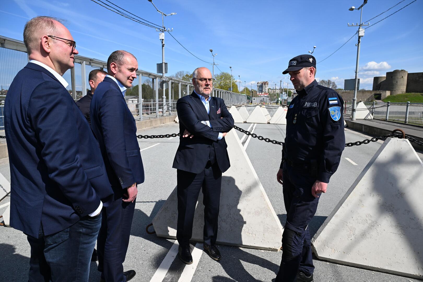 • Landamæraeftirlit í Narva, við landamæri Eistlands og Rússlands, ásamt Alar Karis forseta Eistlands og Lauri Bambus, sendiherra Eistlands gagnvart Íslandi. Ljósmynd: Forsetaskrifstofa Eistlands / Raigo Pajula.