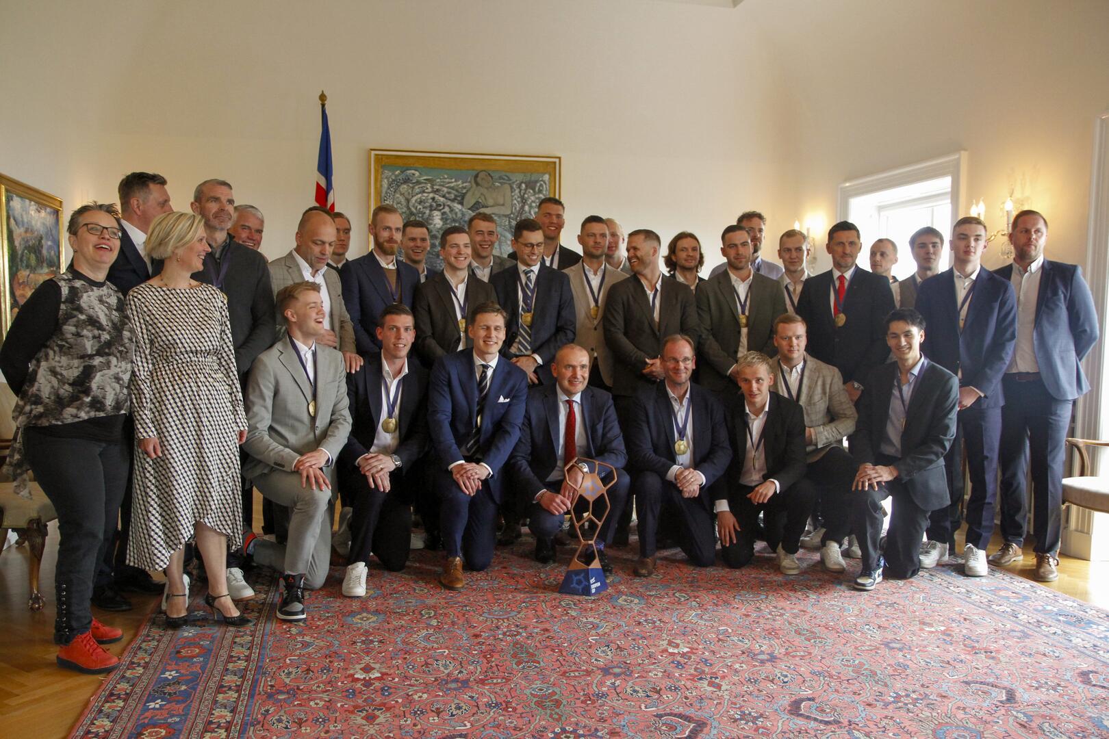 • Móttaka fyrir karlalið Vals í handbolta, nýkrýnda Evrópumeistara. Ljósmynd: UMFÍ/Jón Aðalsteinn