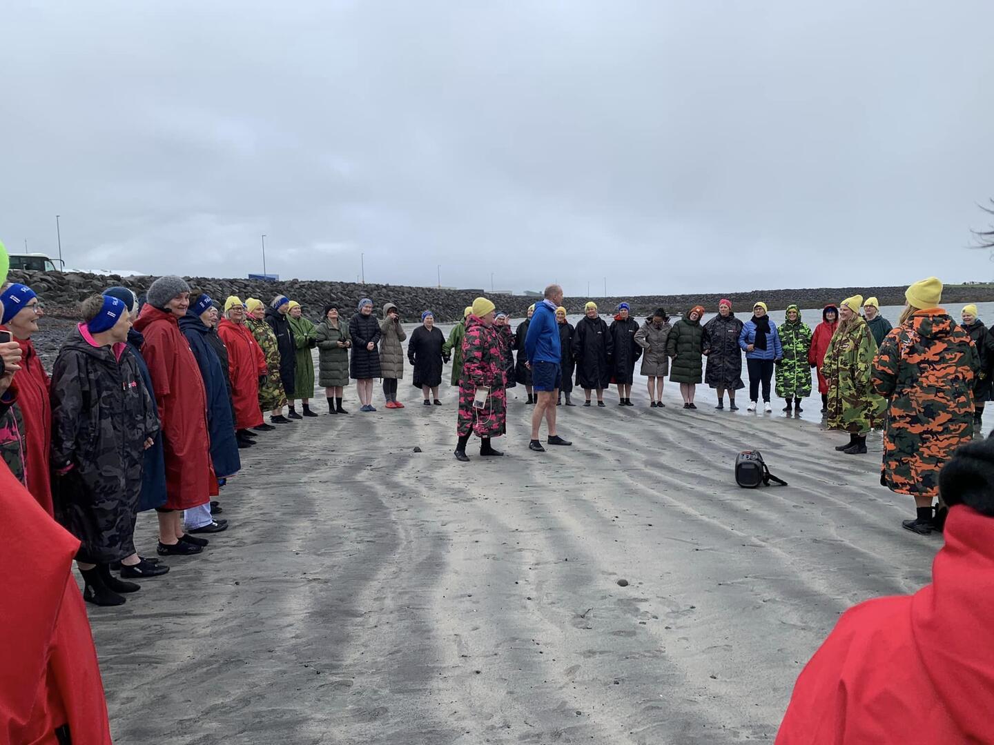 • Sjósund í Helguvík á Álftanesi með hópi færeyskra sjósundskvenna sem eru hér á landi í boði Glaðari þú sjóbaðsleikjanámskeið. Ljósmynd: Sonia Zaucha.